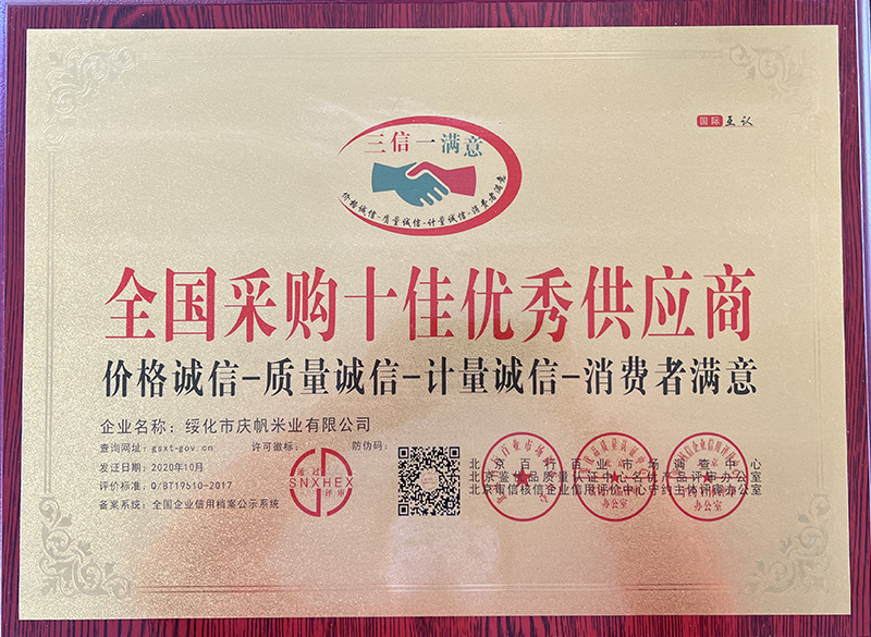 關于慶帆米業(yè) 客戶至上 品質優(yōu)良 您現(xiàn)在的位置:網(wǎng)站首頁 > 關于我們 > 資質榮譽 企業(yè)文化 CORPORATE CULTURE 資質榮譽 HONOR 領導致辭 LEADER’S SPEECH 公司簡介 COMPANY PROFILE 優(yōu)秀民營企業(yè)家 中國品牌“放心米” 全國優(yōu)秀民營企業(yè) 全國農(nóng)產(chǎn)品加工標桿示范單位 全國采購十佳優(yōu)秀供應商 最美捐贈單位 共15條記錄 當前為第1頁/共3頁上一頁123下一頁